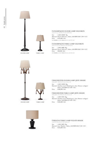シャンパーニュフロアランプ-オールドアイアン/テーブルランプ-オールドアイアン・ロチェスターフロアランプ-ジュートシェード/テーブルランプ-ジュートシェード・ヘレナテーブルランプ-プリーツシェード ティカランタンチークベースS/L・モーラランプS/L